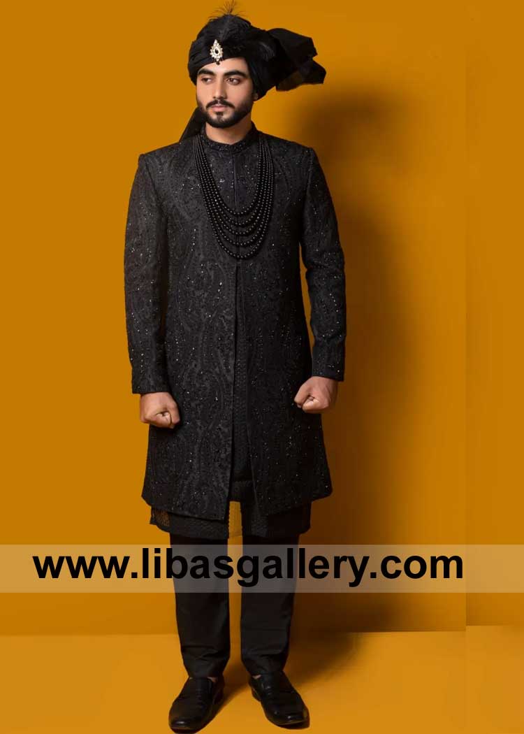 Latest Exclusive Black Groom Sherwanis for Nikah