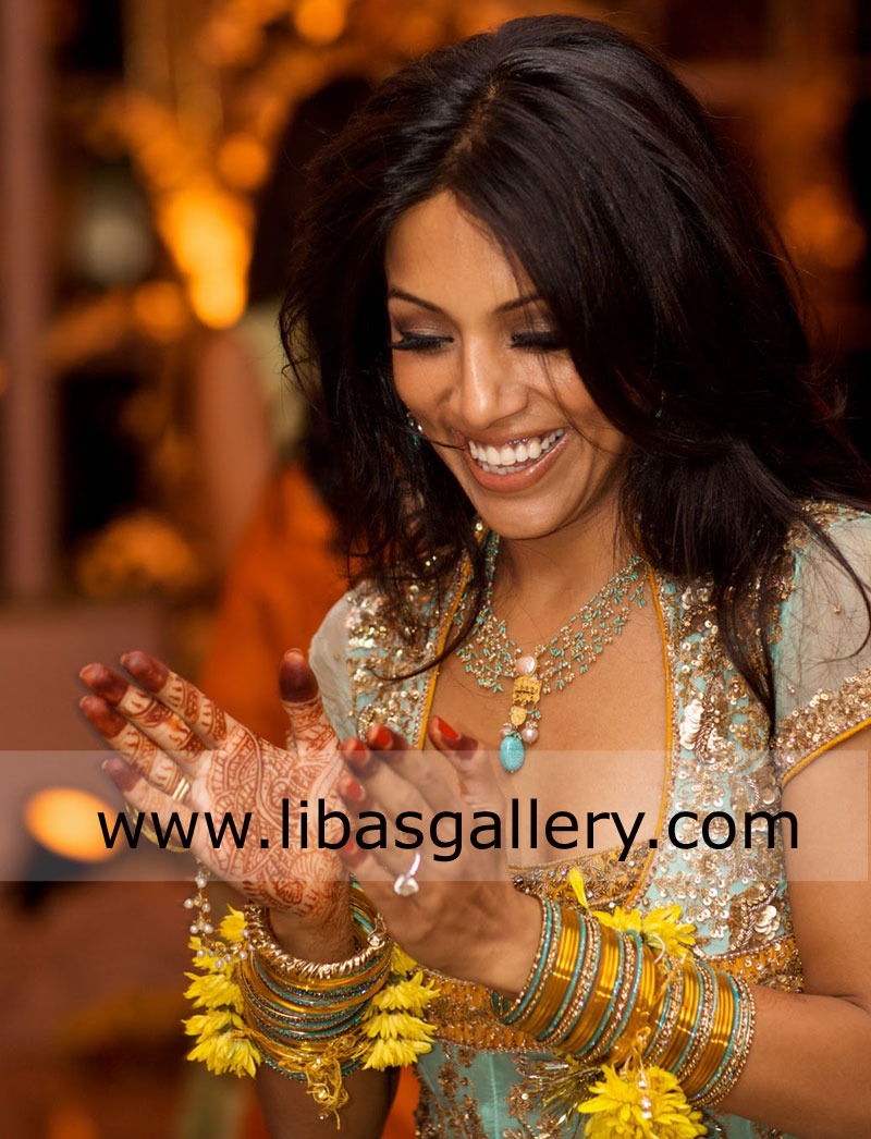 Sequins, beads, dabka, resham & sworovski crystals.