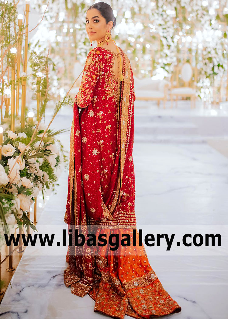 Venetian Red Gabriela Bridal Gharara with Train