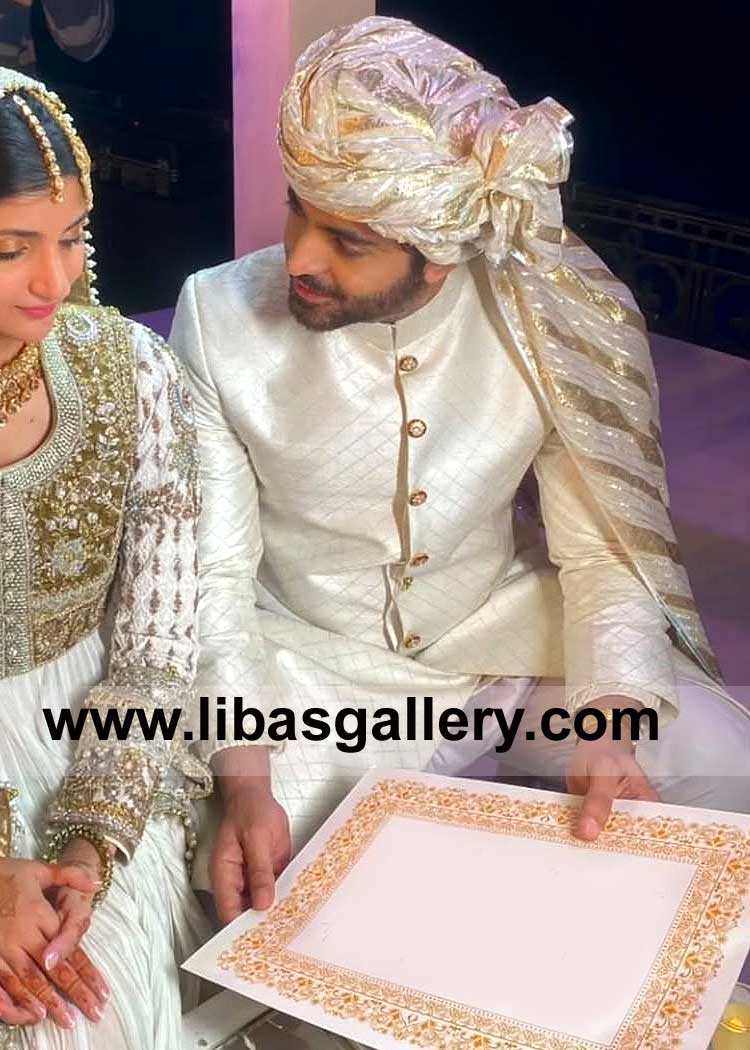 Off white Celebrity Style Groom Nikah Sherwani Suit