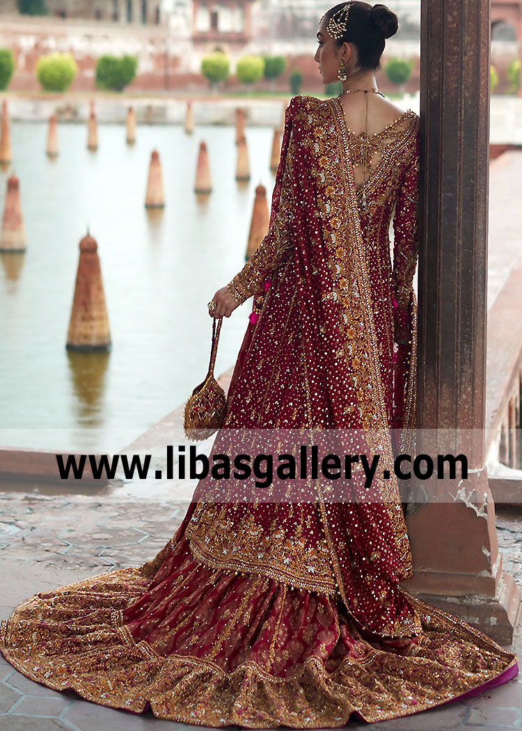 Created for the modern-glam bride. Adding the perfect amount of sophistication to this glamorous flared Farshi Gharara Dress, we love this unique feature!