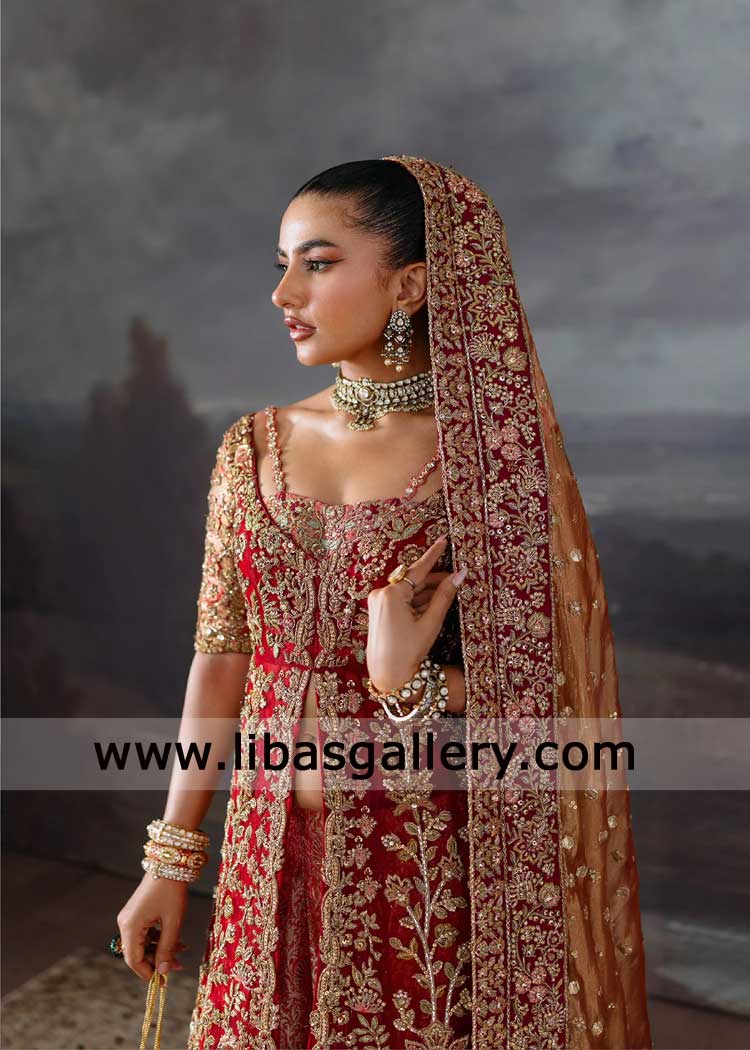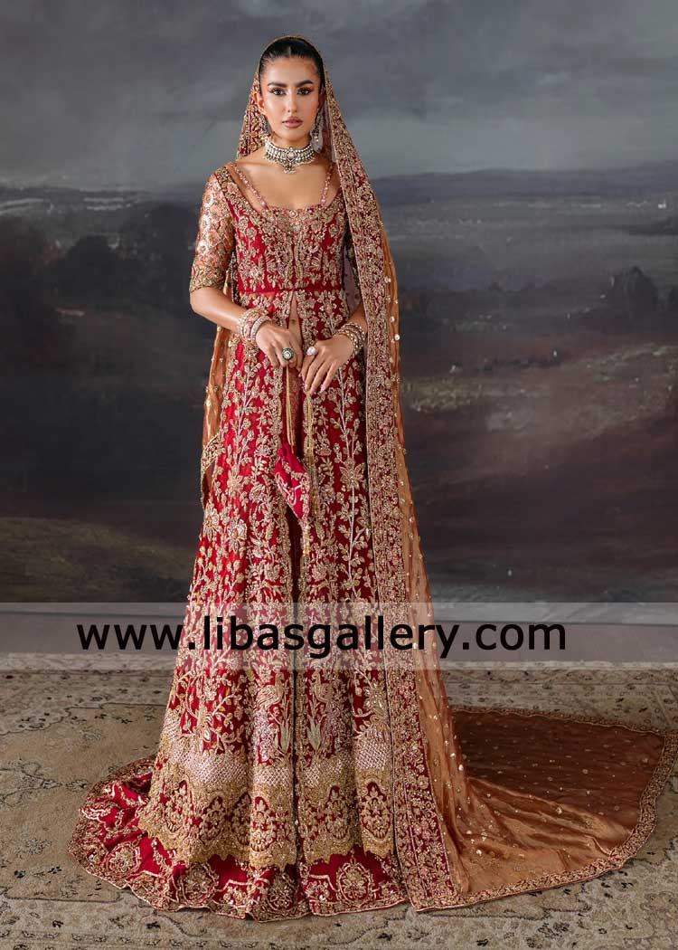 Bridal Red Peshwas Rust Farshi Gharara Pinkish Dupatta