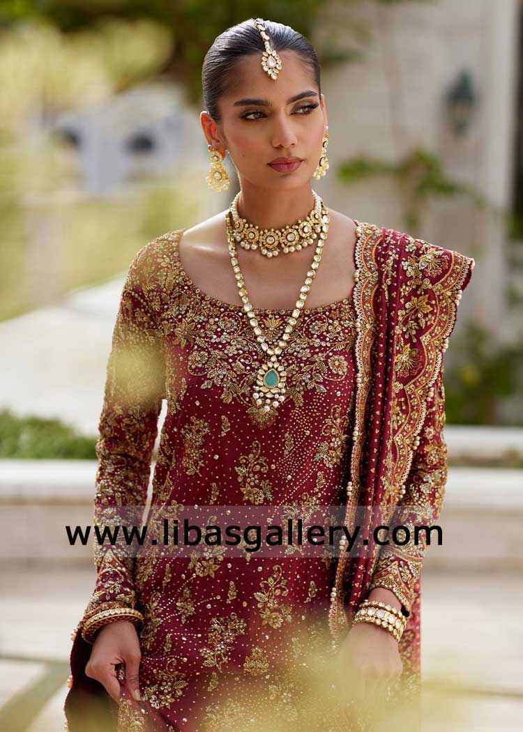 Deep Red Maroon Bridal Lehenga Dress for Wedding