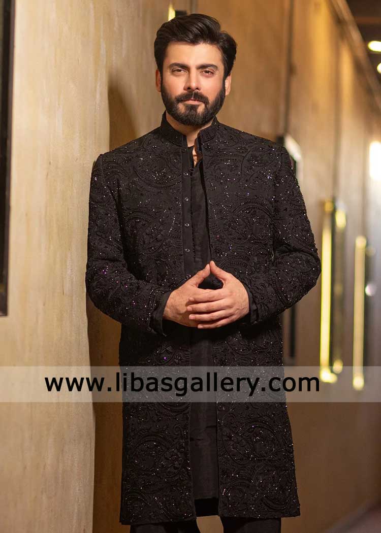 Deep Black Embroidered Nikah Sherwani with Hand Work