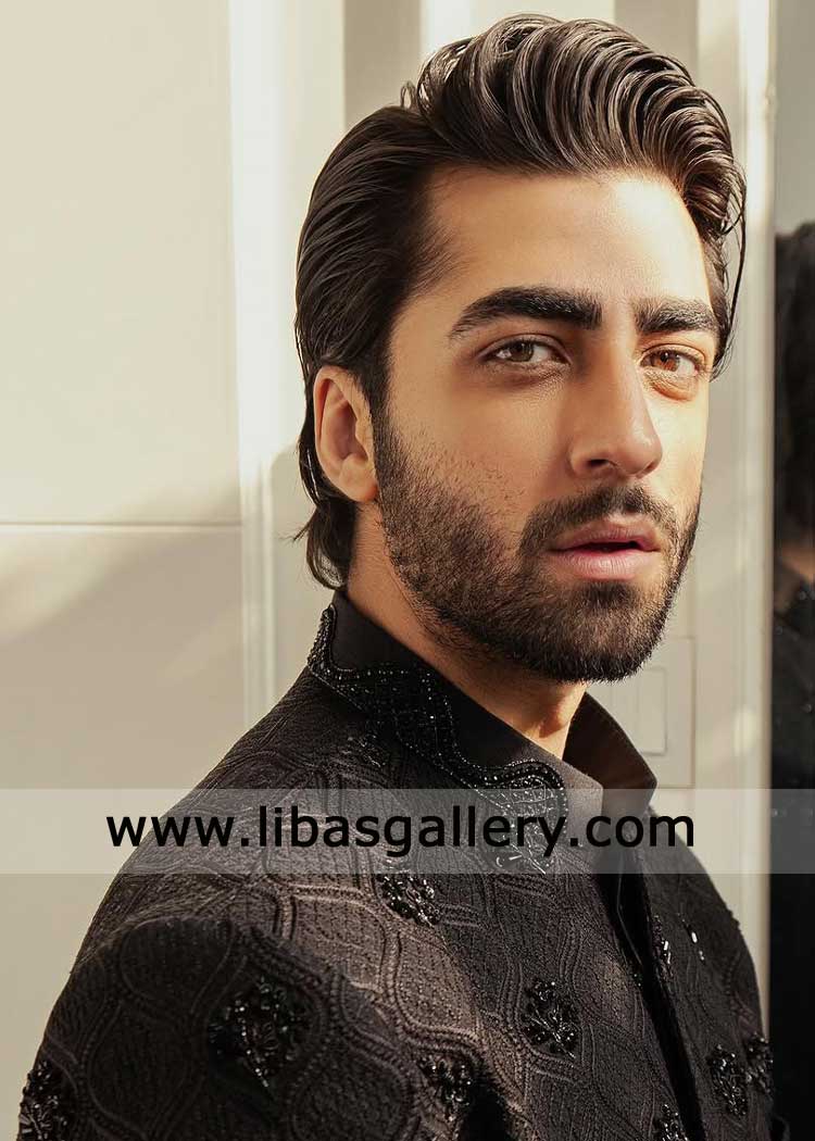 Jet Black Embroidered Groom Sherwani Hand Embellished