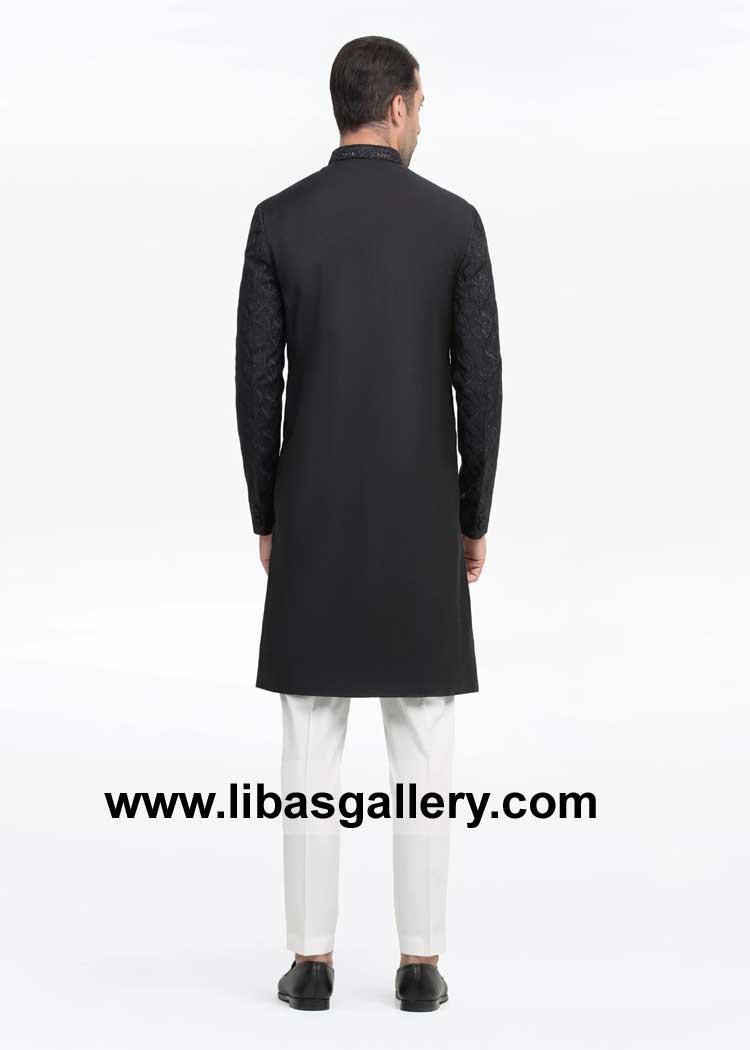 Luxurious Black Embroidered Groom Wedding Sherwani Style