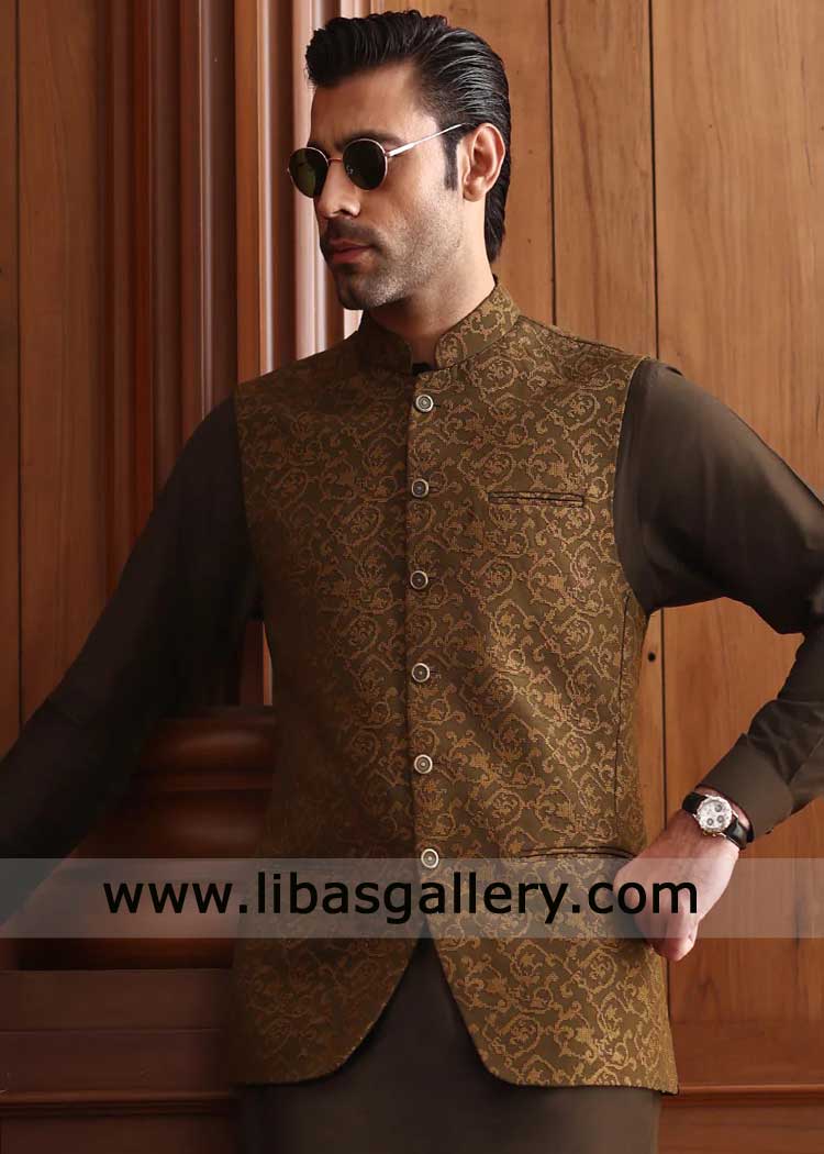 Olive Delicate Waistcoat Embroidered for Men Wedding