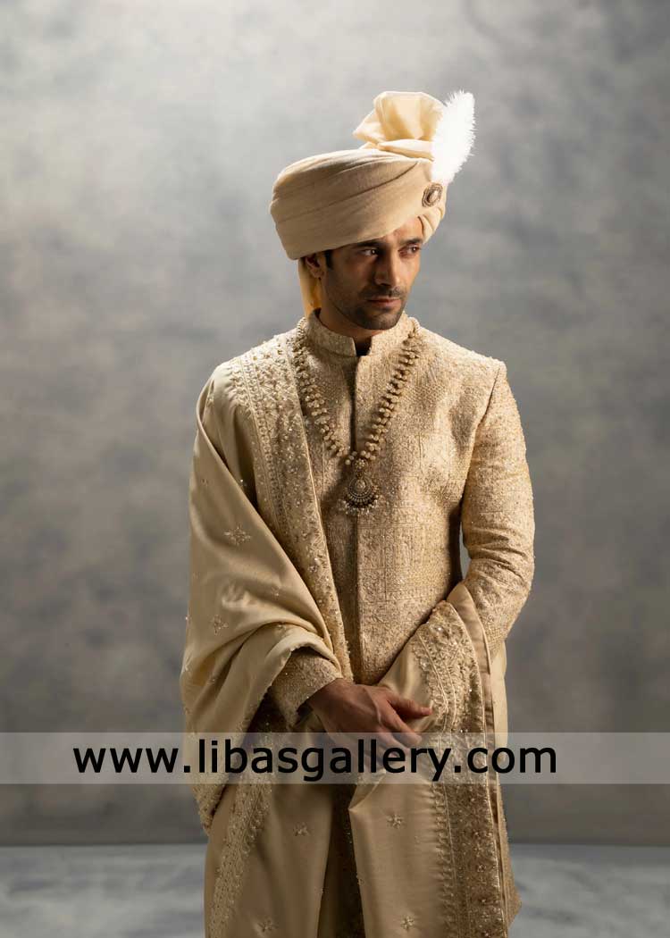 Royal Beige Wedding Sherwani Heavy Embellished for Groom