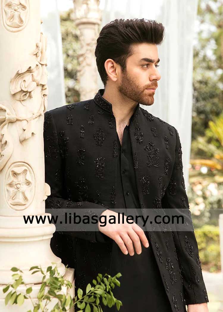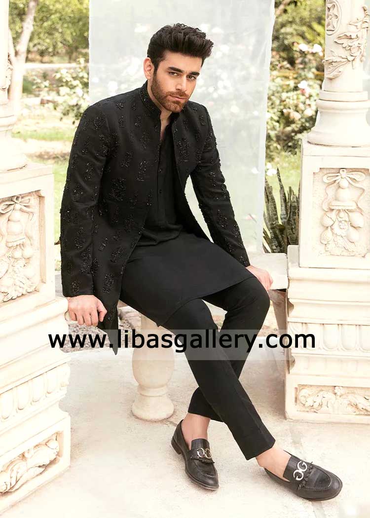Tricon Black Self hand embellished Premium Groom Sherwani