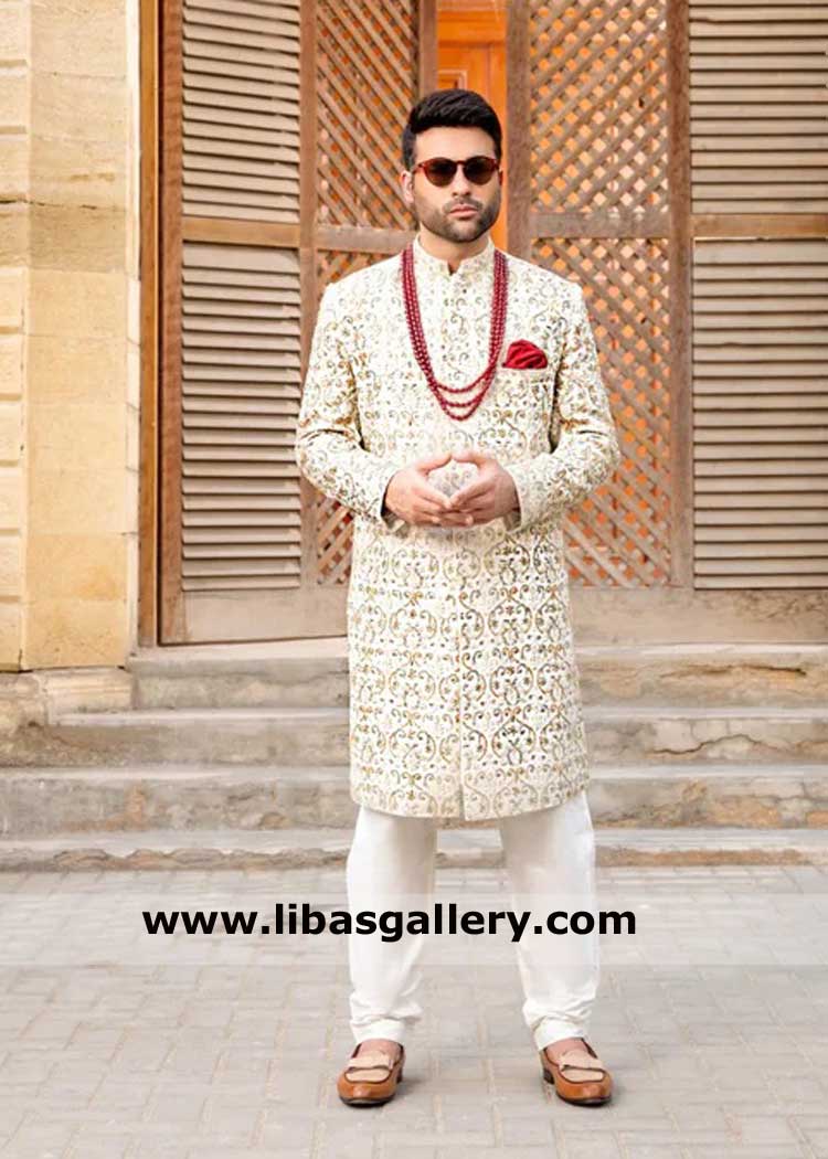 White Embroidered Groom Sherwani