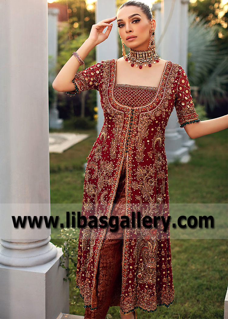 Barn Red Almandine Hyderabadi Style Shirt with Pants