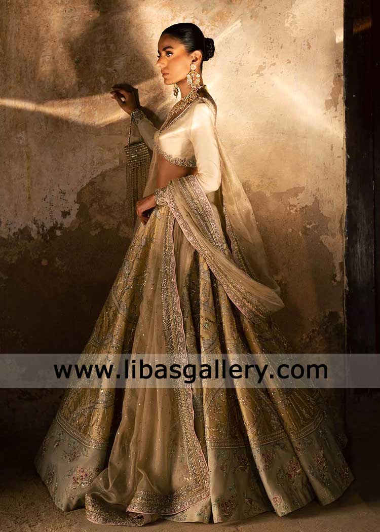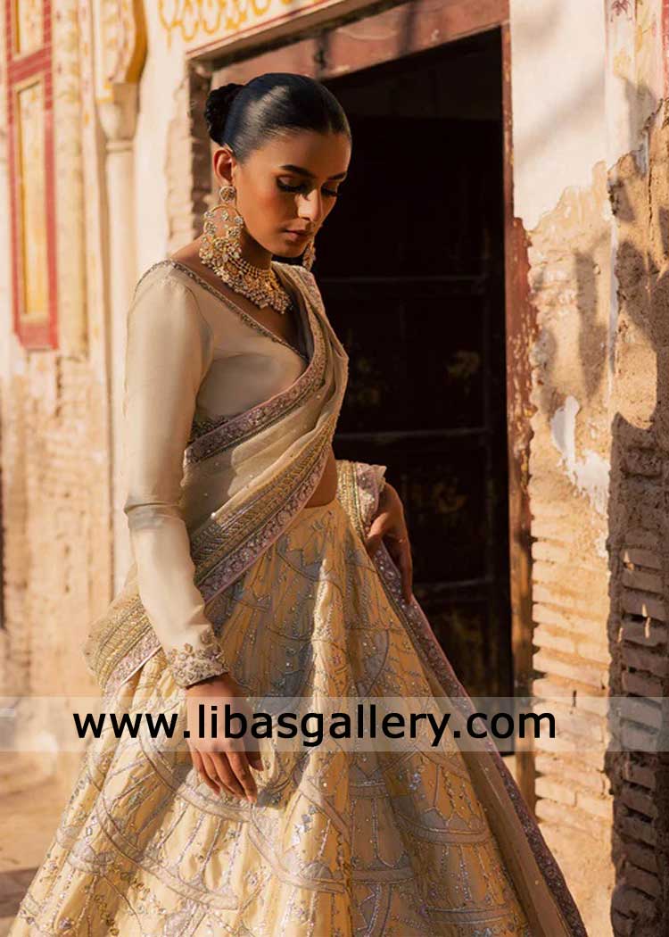 Butter Yellow Lehenga Choli Geometric Floral Pattern