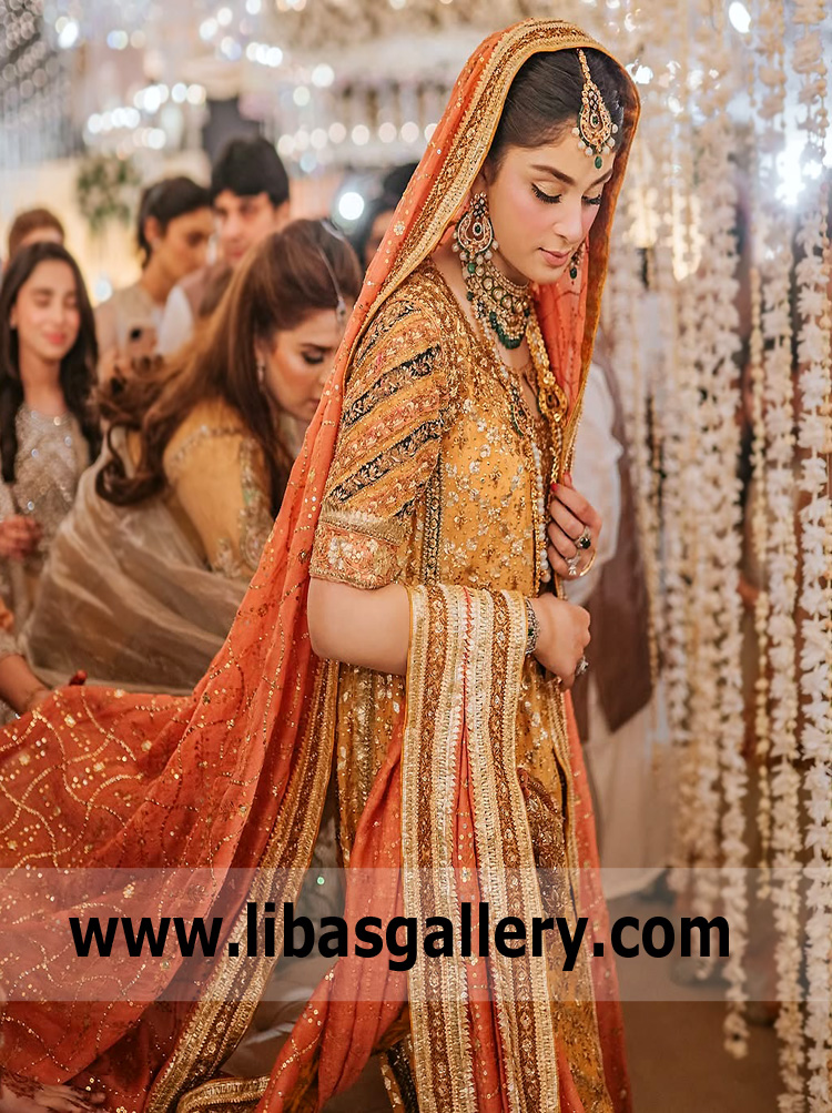 Carrot Orange Hyderabadi Shirt and Coral Kamdani Dupatta