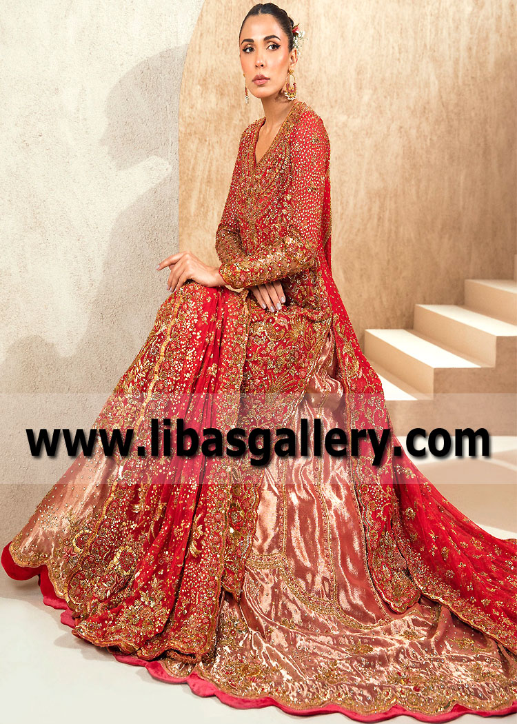 Cornell Red Iris Bridal Lehenga