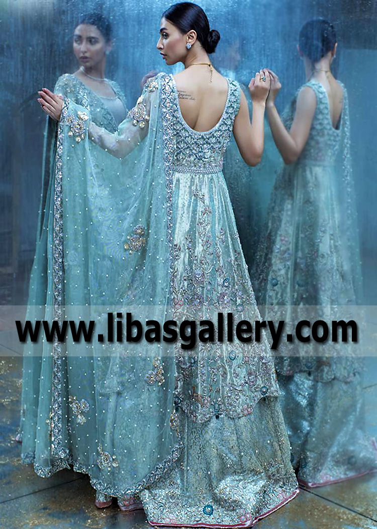 Crayola Sky Blue Boracite Flowy Gown with Lehenga
