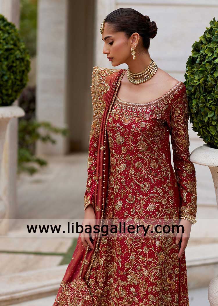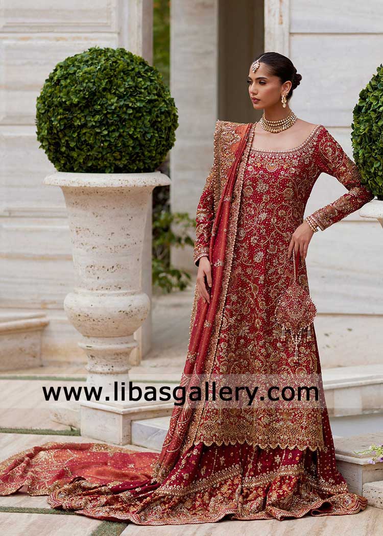 Crimson Red Gold Bridal Lehenga for Grand Wedding