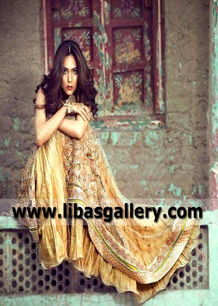 Gold Amber Danburite Jacket with Lehenga