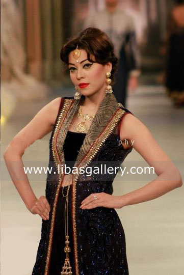 Front hook closure. Finish with banarsi jamawar applique border around the hemline.