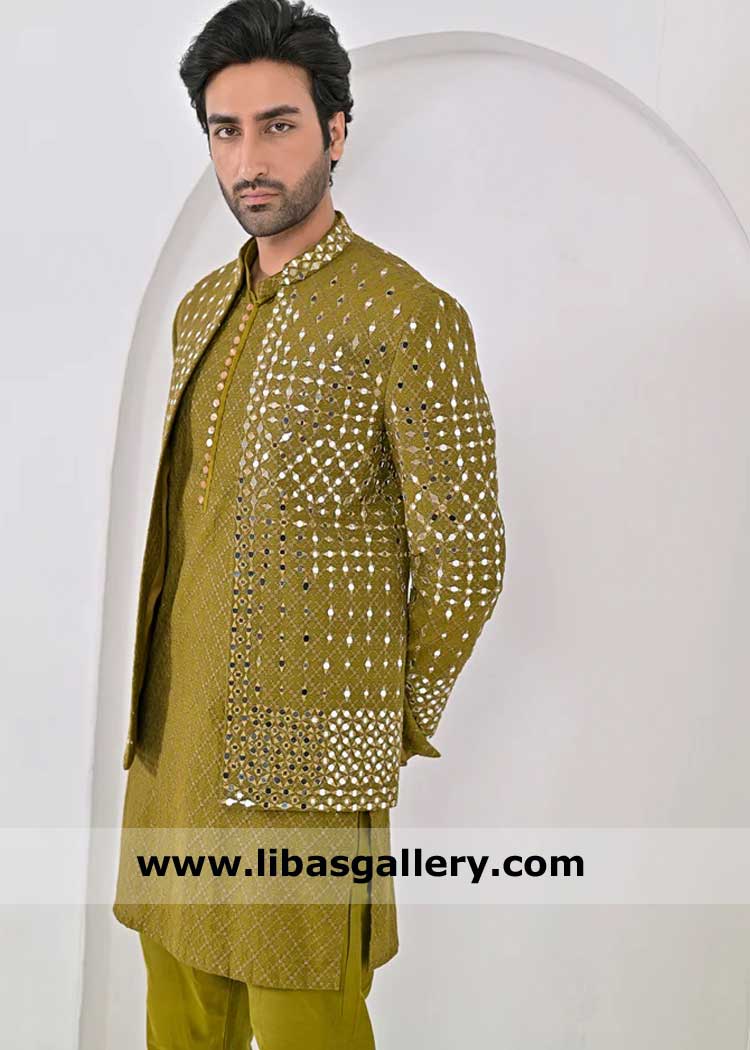 Dhaani mirror work groom prince coat