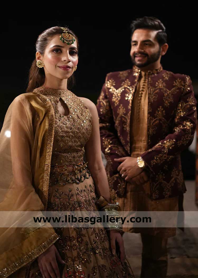 Maroon Embellished Groom Prince Coat