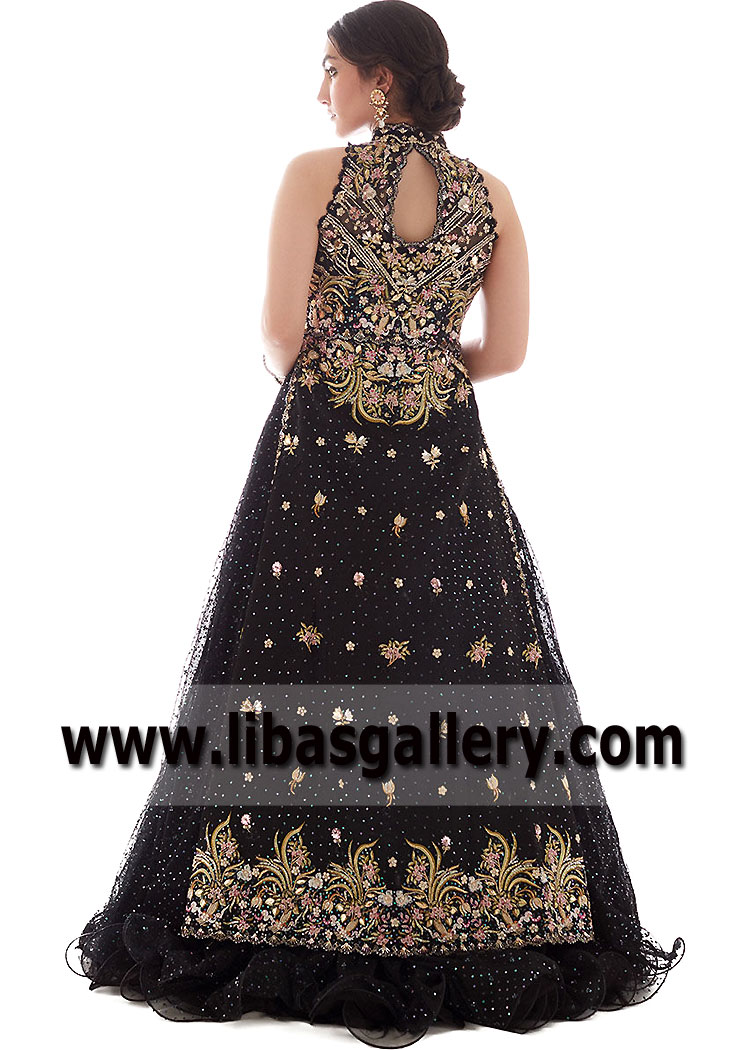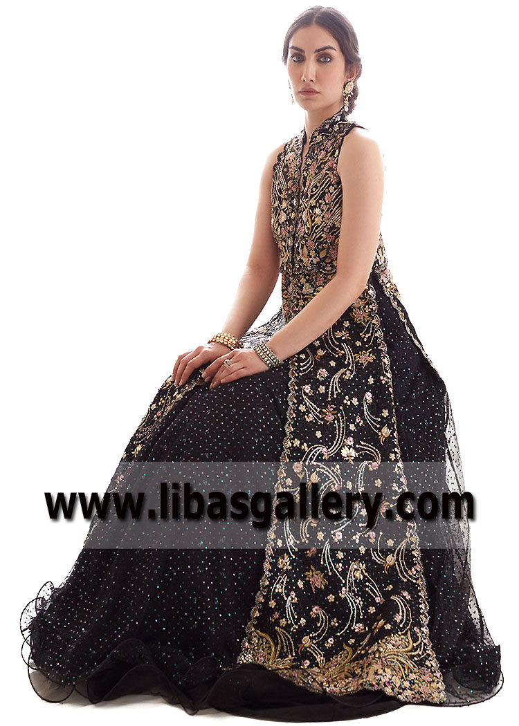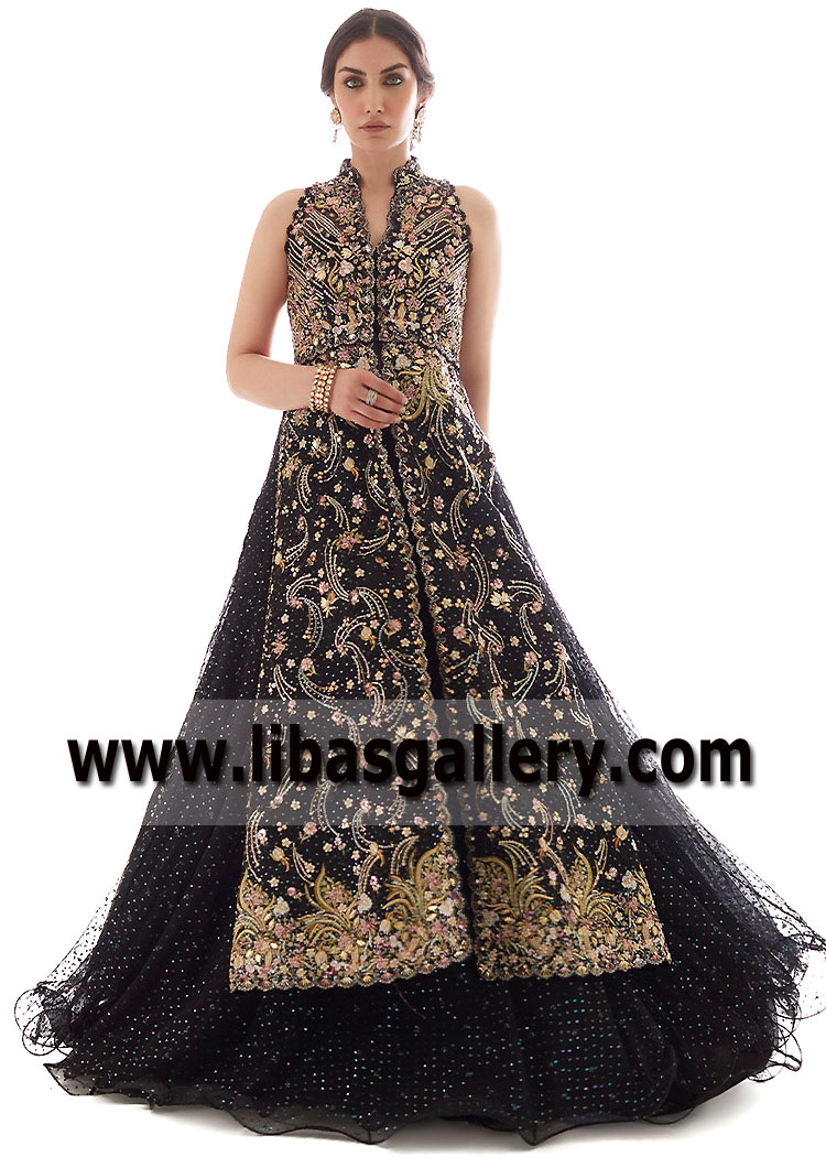 Black Magical Bloom Bridal Jacket with Lehenga