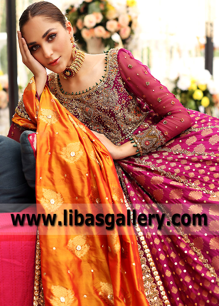 Tyrian Purple Hessonite Pishwas Chatta Patti Lehenga