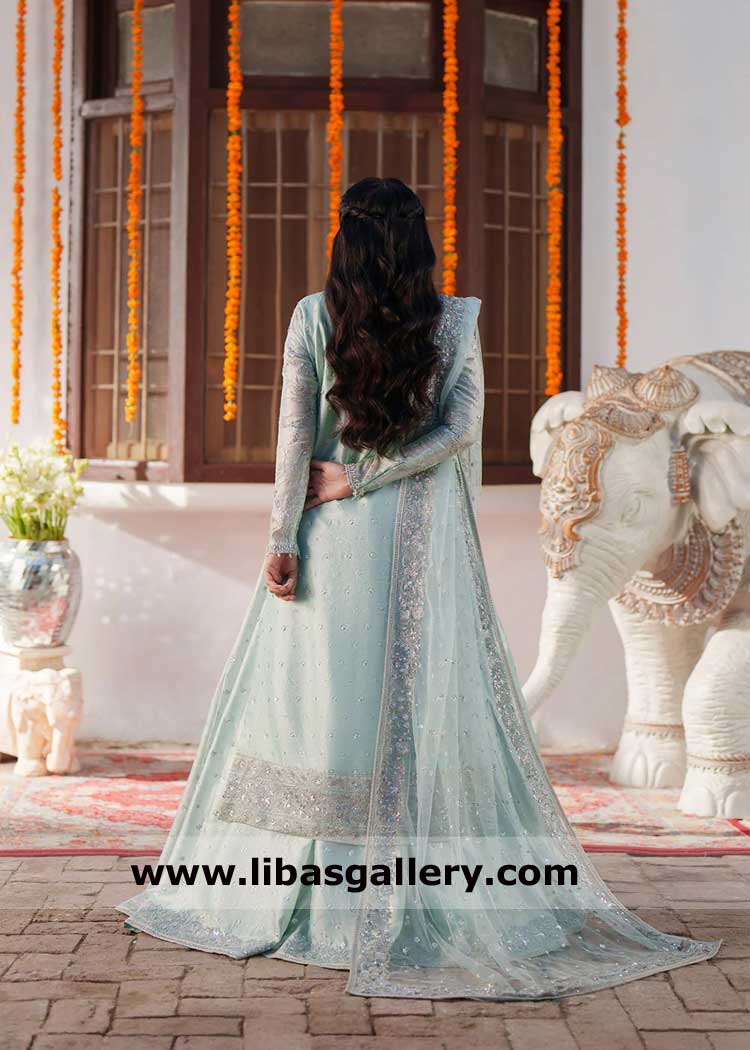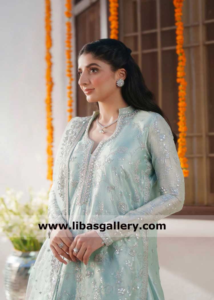 Ice Blue Embroidered Women Sharara Dress