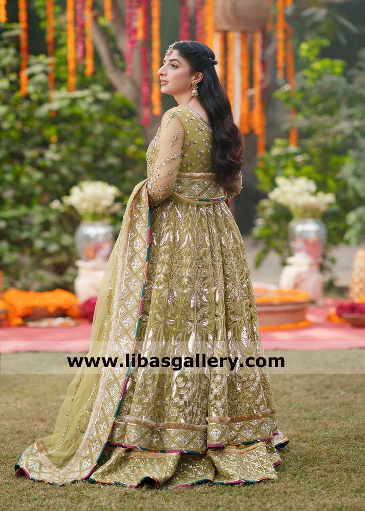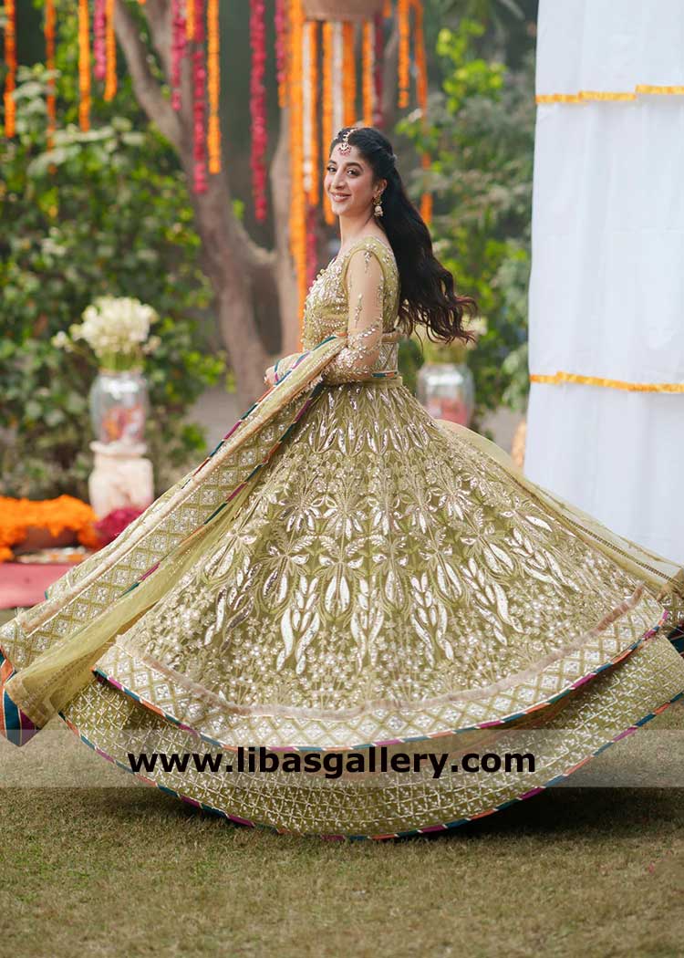 Olive Green Maxi lehenga with delicate Chatta Patti