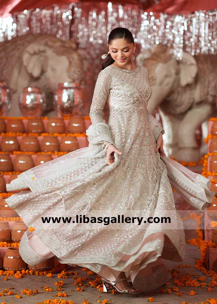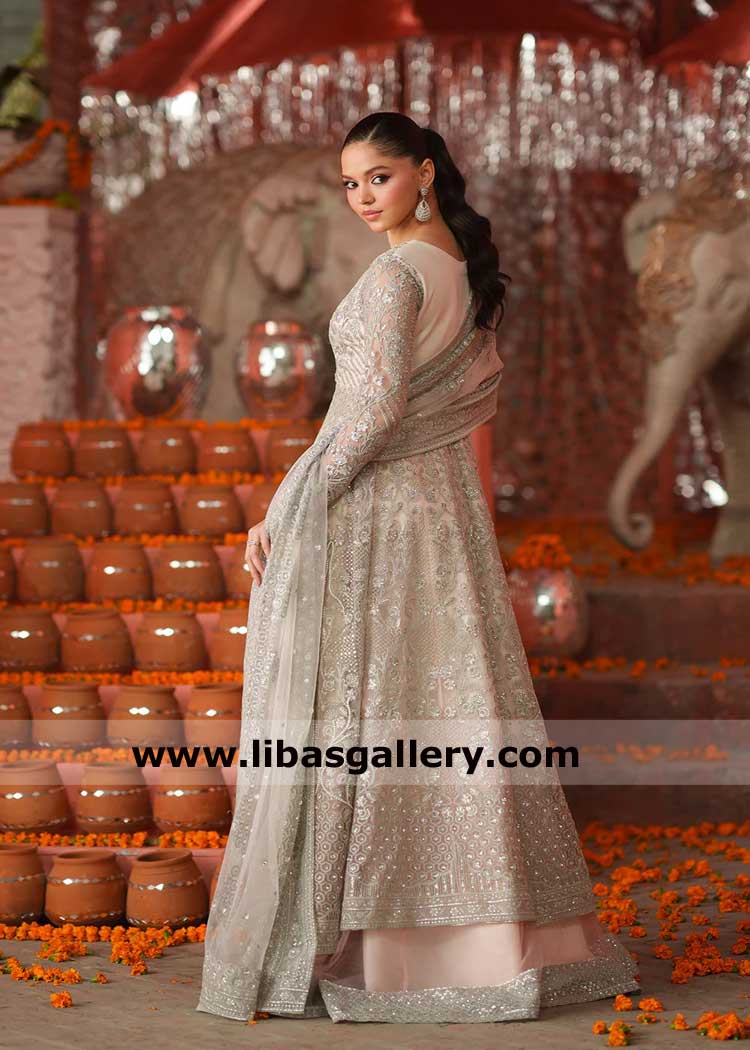 Peach Hue Embroidered Maxi Lehenga Bridal Dress