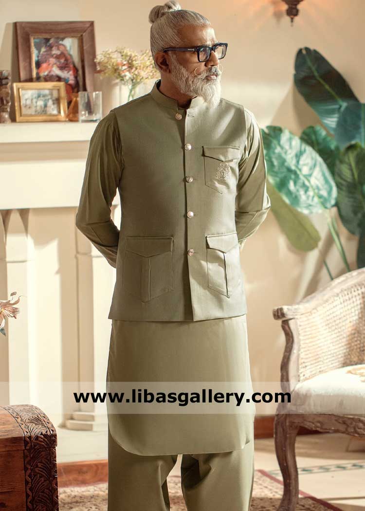 Brown Men waistcoat Style with Kurta Shalwar